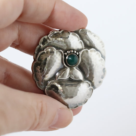 Vintage Georg Jensen Jewelry | Floral Chrysoprase Brooch 152 Denmark
