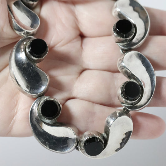 Vintage Antonio Pineda Jewelry | Chunky Modernist Onyx Necklace Taxco Mexico