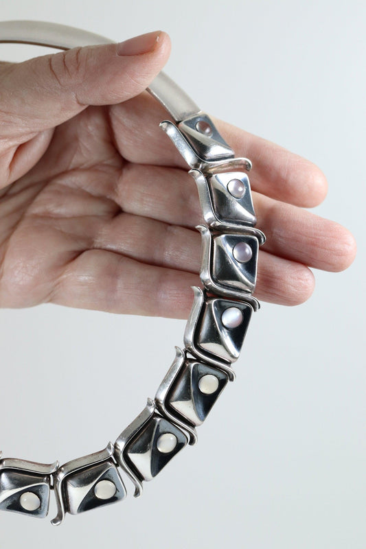 Antonio Pineda Necklace | Taxco Mid-Century Modernist Moonstone Choker | Vintage 970 Sterling Silver Mexico
