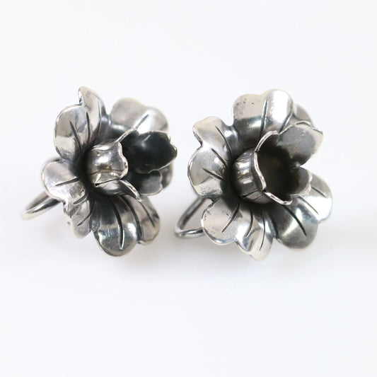 Vintage Georg Jensen Jewelry | JoPol Floral Screwback Earrings USA 1940s