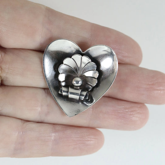 Vintage Georg Jensen Jewelry | Alphonse La Paglia Heart & Shell Brooch USA