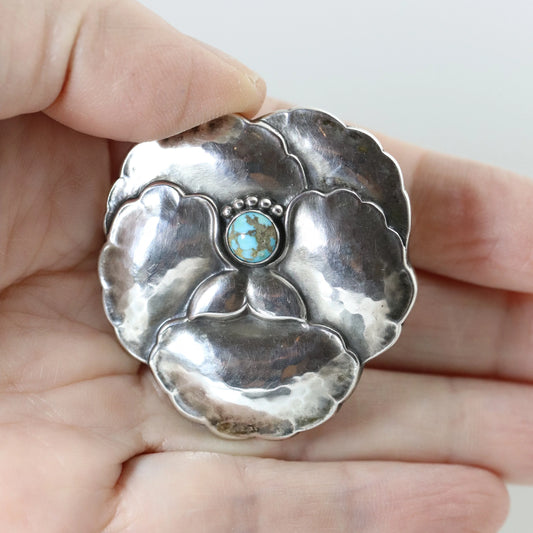 Vintage Georg Jensen Jewelry | Art Nouveau Pansy with Turquoise Brooch 113