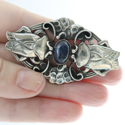 Georg Jensen Jewelry | Lapis Lazuli Floral Art Nouveau Silver Vintage Brooch 71