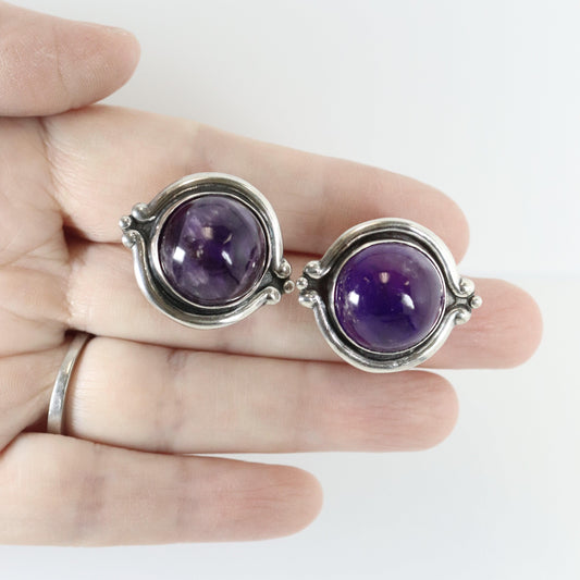 SOLD OUT: Vintage Los Castillo Taxco Silver Mexican Jewelry | Large Mid Century Amethyst and Silver Earrings