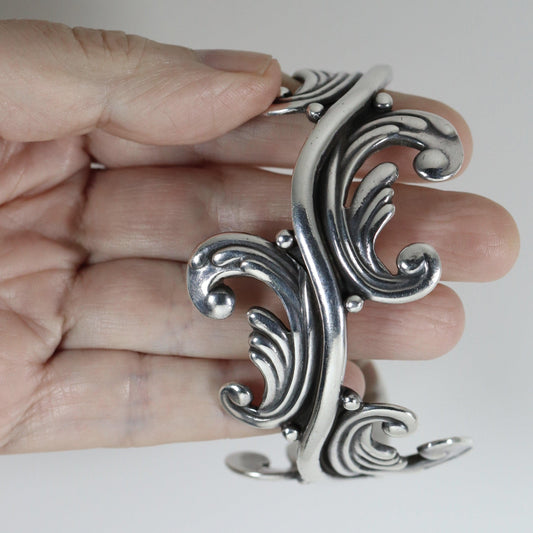 SOLD OUT: Vintage Los Castillo Taxco Silver Mexican Jewelry | Mid-Century Cuff Bracelet with Foliate Trim