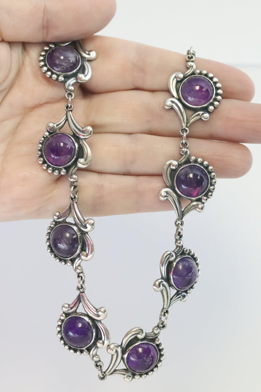 SOLD OUT: Vintage Los Castillo Taxco Silver Mexican Jewelry | Mid-Century Round Amethyst Floral Necklace