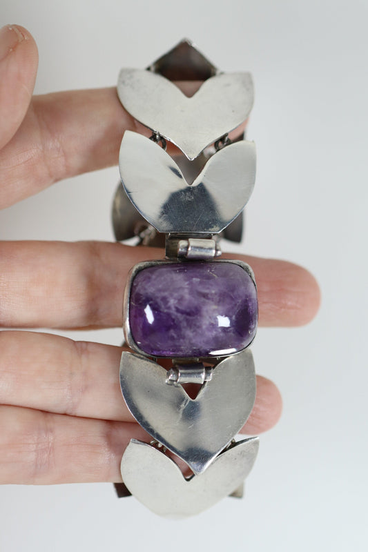 SOLD OUT: Vintage Fred Davis Taxco Silver Mexican Jewelry | Handcrafted Amethyst Link Bracelet