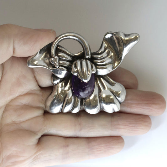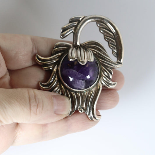 SOLD OUT: Vintage Los Castillo Taxco Silver Mexican Jewelry | Mid Century Orchid Amethyst Brooch