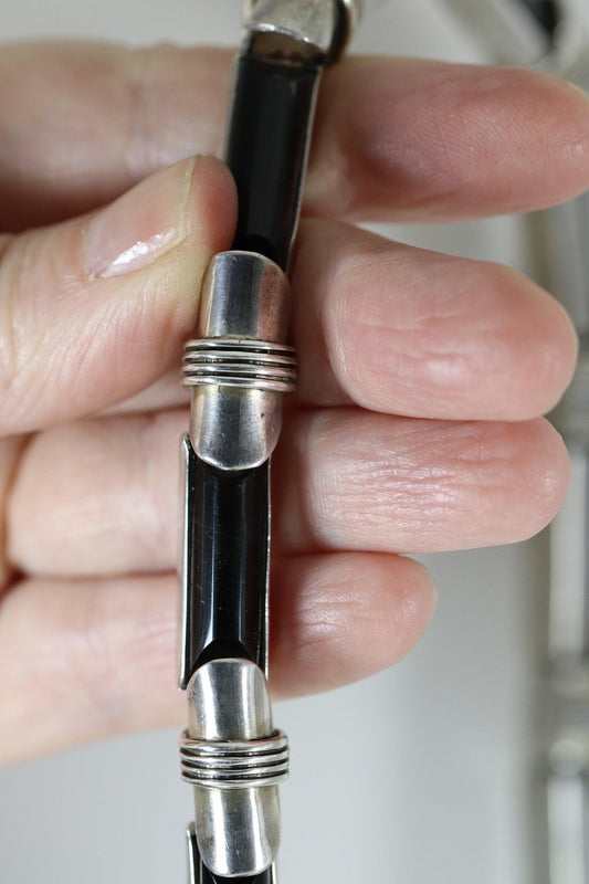 SOLD OUT: Vintage Sigi Pineda Jewelry | Obsidian Modernist Hinged Bracelet Mexico