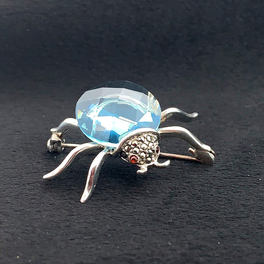 SOLD OUT: Aqua Blue Beetle Brooch | Vintage Sterling Silver
