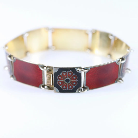SOLD OUT: David Andersen Enamel Bracelet | Vintage Sterling Silver| Guilloche Red and Black Panel Bracelet Norway