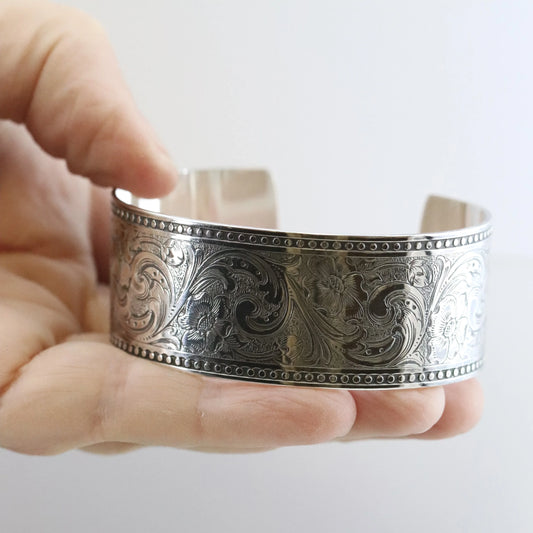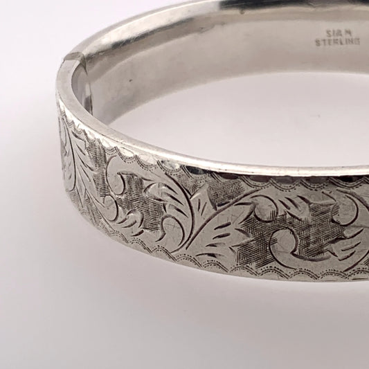 SOLD OUT: English Etched Bangle | Vintage Sterling Silver | Hinged Victorian Floral Pattern Bracelet