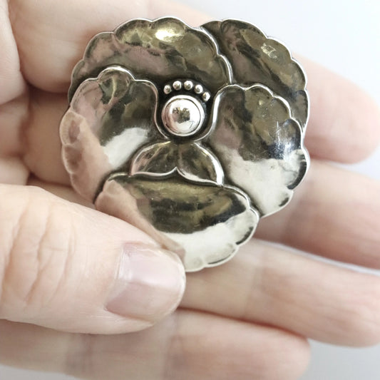 SOLD OUT: GEORG JENSEN DESIGNED PANSY FLOWER BROOCH 113