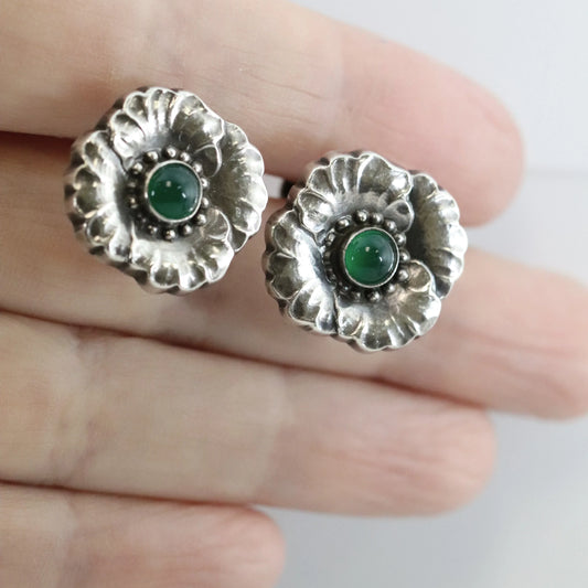 SOLD OUT: ESTATE GEORG JENSEN CHRYSOPRASE FLORAL EARRINGS 49