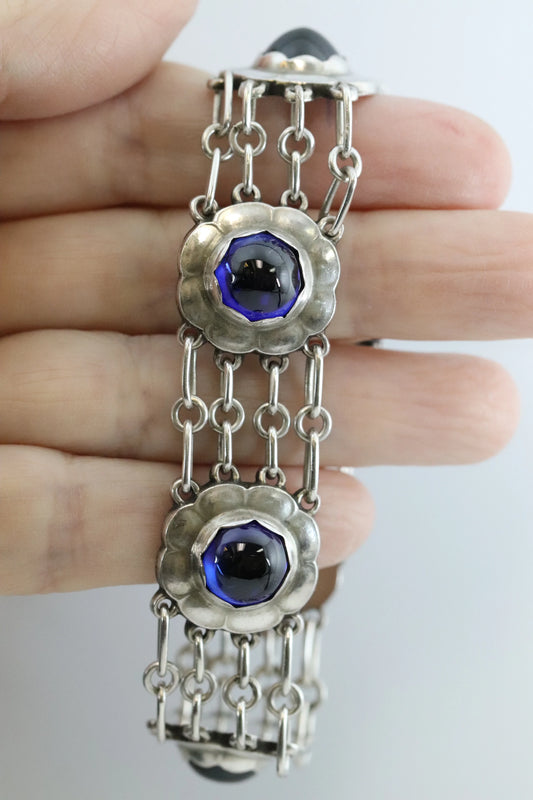 SOLD OUT: ESTATE GEORG JENSEN SYNTHETIC SAPPHIRE FLORAL BRACELET 31