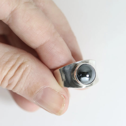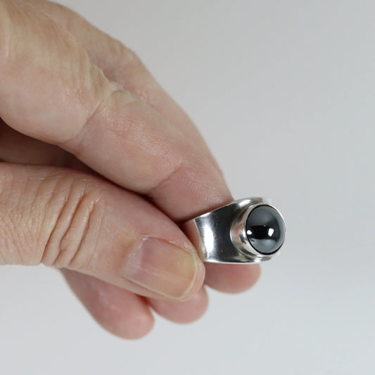 SOLD OUT: Georg Jensen Hematite Ring 124 US 6 1/2 | Vintage Sterling Silver | Poul Hansen Modernist