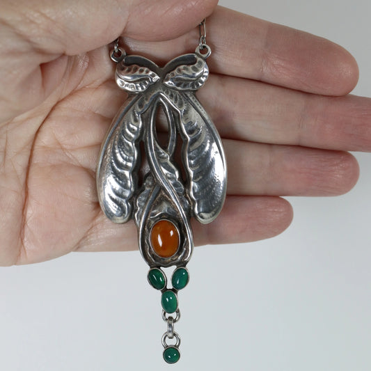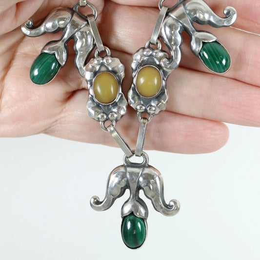 SOLD OUT: Georg Jensen Jewelry | Amber Malachite Art Nouveau Silver Vintage Necklace 9