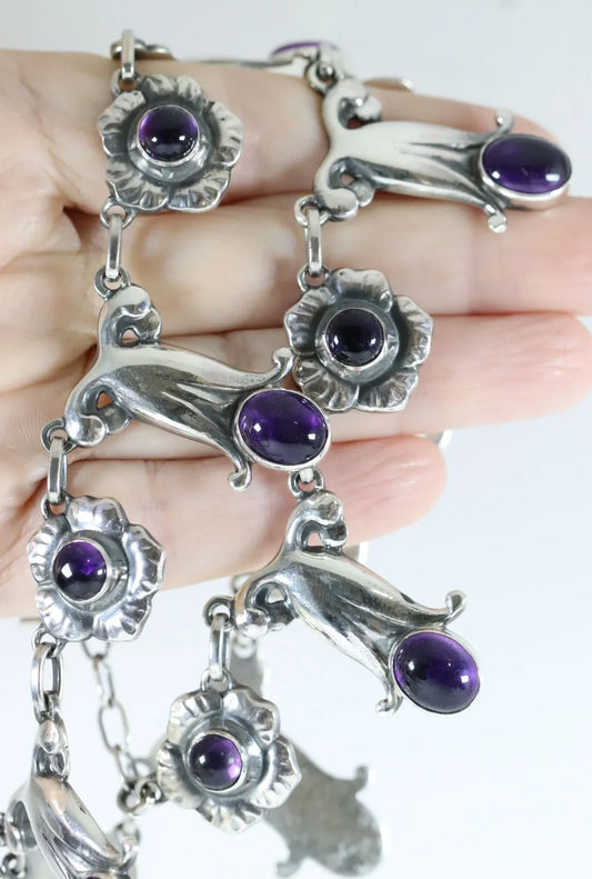 SOLD OUT: Georg Jensen Jewelry | Amethyst Art Nouveau Silver Vintage Necklace 7
