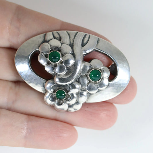 SOLD OUT: Georg Jensen Jewelry | Chrysoprase Flower Art Nouveau Silver Vintage Brooch 28