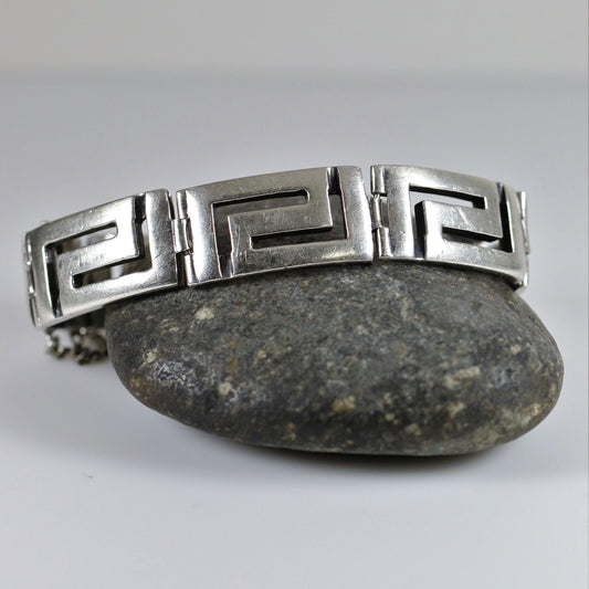 SOLD OUT: Greek Key Link Panel Bracelet | Vintage Sterling Silver | Large Male or Female