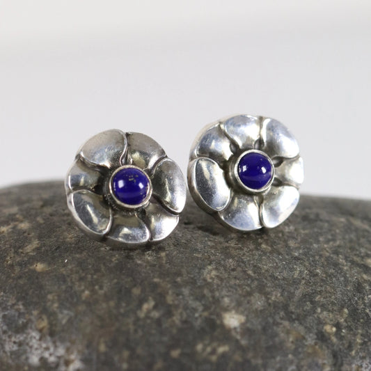 SOLD OUT: Georg Jensen Lapis Lazuli Flower Earrings 36 | Vintage Sterling Silver | Studs Mid-Century Denmark