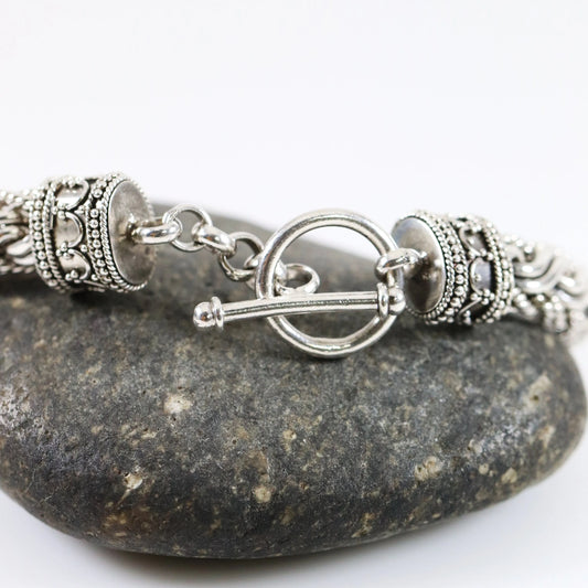 SOLD OUT: Heavy Braided Wheat Chain Link Bracelet | Vintage Sterling Silver | Ornate Byzantine Toggle