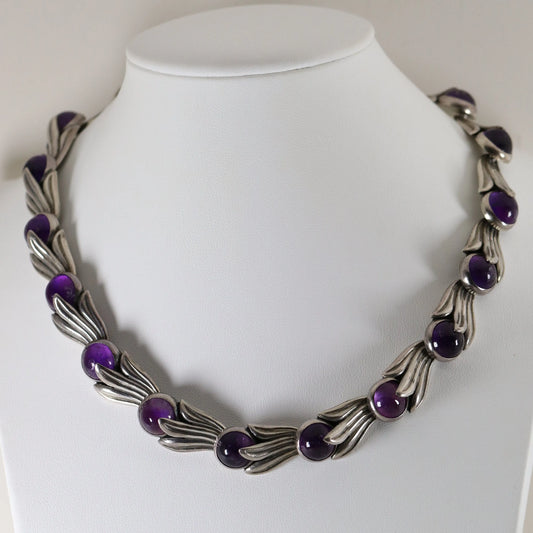 SOLD OUT: Los Castillo Amethyst Bell Flower Necklace | Vintage Sterling Silver | Taxco Mid-Century
