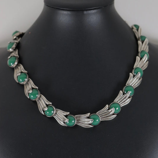 SOLD OUT: Los Castillo Green Onyx Floral Necklace | Vintage Sterling Silver | Taxco Mid-Century