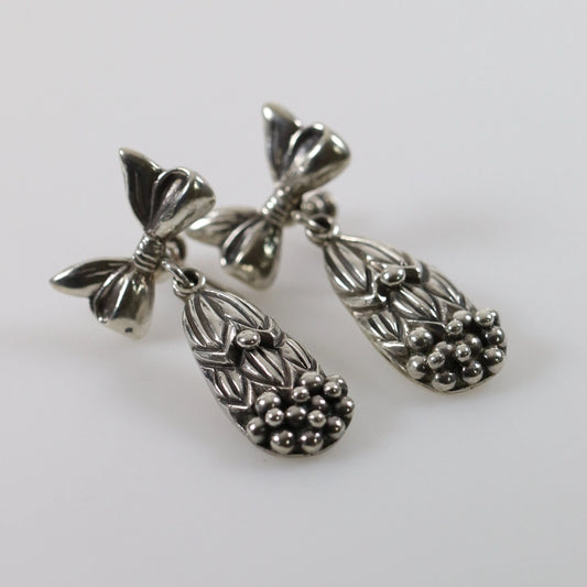 SOLD OUT: Margot de Taxco Bow and Berry Drop Earrings | Vintage Sterling Silver | Screwback Taxco Mexico