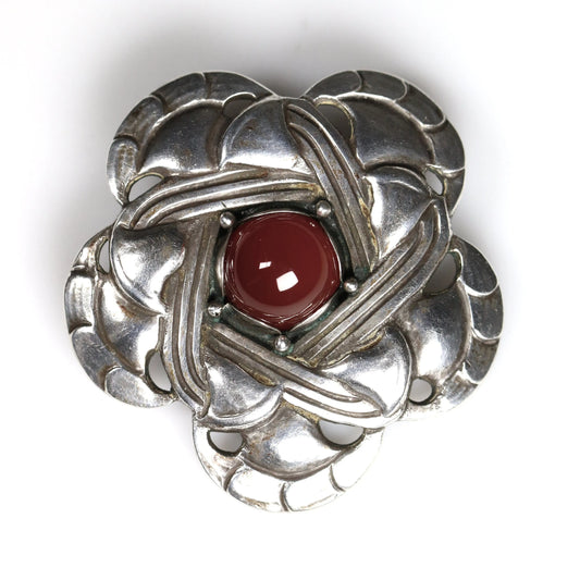 SOLD OUT: Rare Georg Jensen 826S Brooch 12 | Antique Sterling Silver | Carnelian Denmark