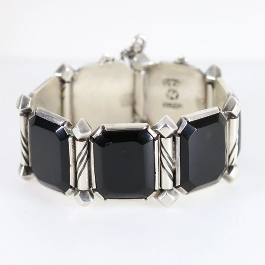 SOLD OUT: Taxco Hector Aguilar Obsidian Panel Bracelet | Vintage Sterling Silver | Signed Mid Century Mexico