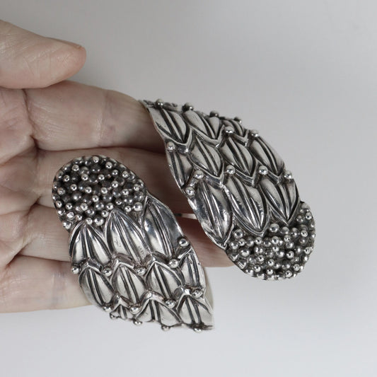 SOLD OUT: Margot de Taxco Foliate Berry Bangle | Vintage Sterling Silver | Spring Clamper Bracelet Taxco Mexico
