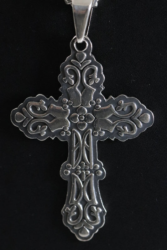 SOLD OUT: Ornate Mexican Cross Pendant Necklace | Vintage Sterling Silver | 20" Figaro Chain