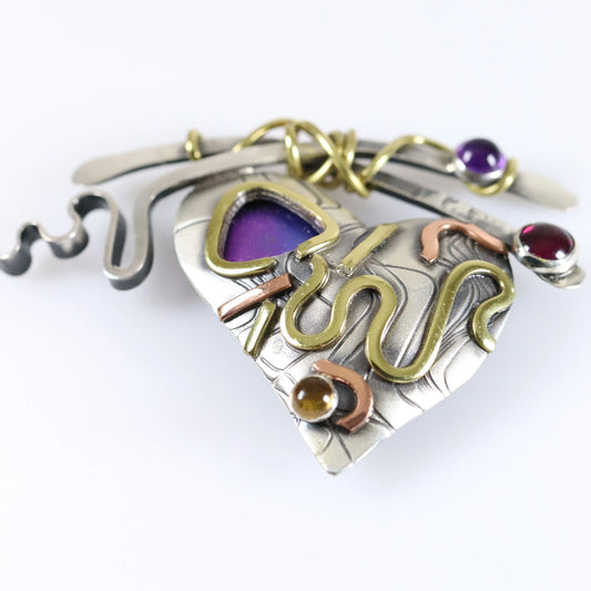 SOLD OUT: Susan Maria Mixed Metal Heart Brooch | Vintage Sterling Silver | Garnet Amethyst Citrine USA