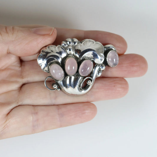 SOLD OUT: Vintage Georg Jensen Jewelry | Rare Rose Quartz Brooch Mid-Century Denmark