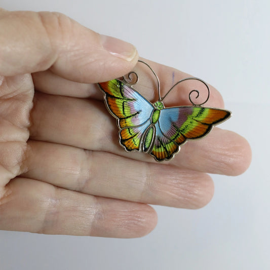 Vintage David Andersen Enamel Jewelry | Pastel Enamel Butterfly Brooch