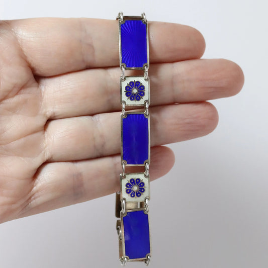 Vintage David Andersen Jewelry | Guilloche Electric Blue Enamel Bracelet