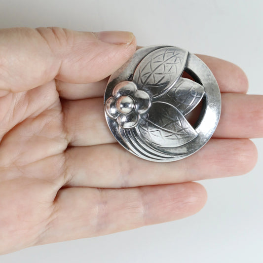 Vintage Georg Jensen Jewelry | Round Floral Brooch 127 Denmark
