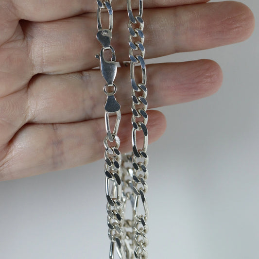 Vintage Sterling Silver Chain | Heavy 18" Figaro Link Chain Necklace Italy
