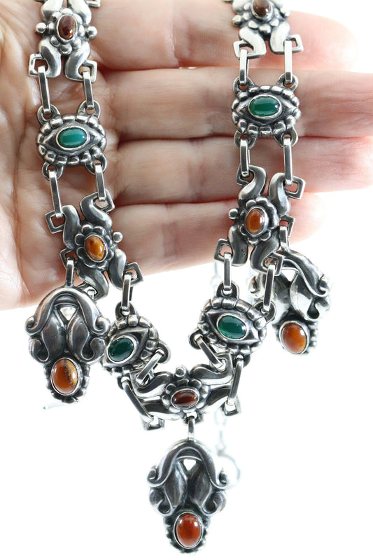 Vintage Georg Jensen Jewelry | Rare Chrysoprase and Amber Art Nouveau Necklace 14