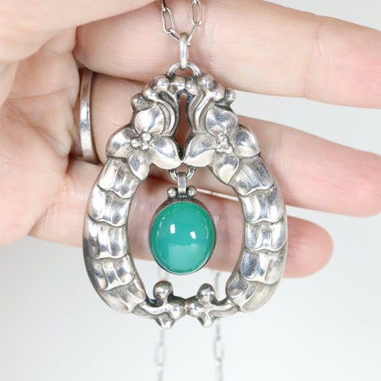 Georg Jensen Jewelry | Chrysoprase Art Nouveau Silver Vintage Necklace Pendant 20