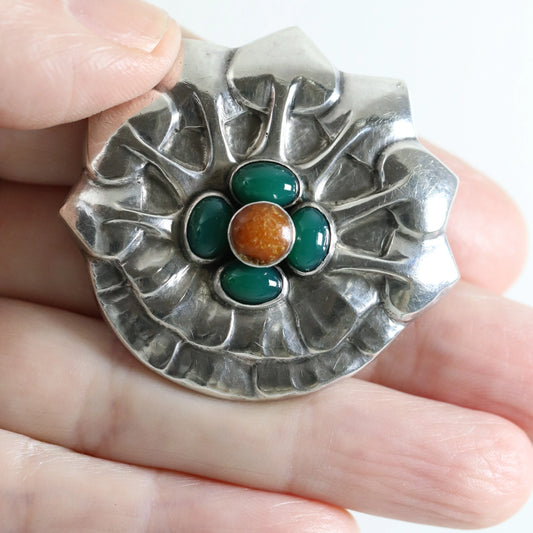 Georg Jensen Jewelry | Amber Chrysoprase Art Nouveau Silver Vintage Brooch 64