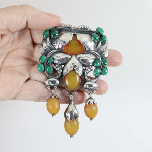 Vintage Georg Jensen Jewelry | Rare Amber and Malachite Master Brooch 96