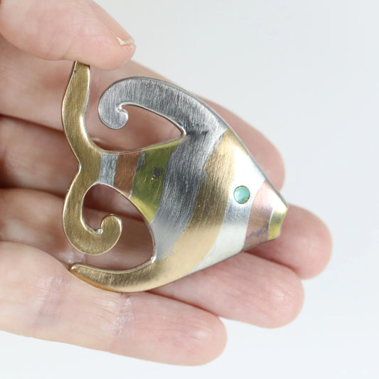 Vintage Los Castillo Jewelry | Married Metal Fish Brooch 230 Mexico