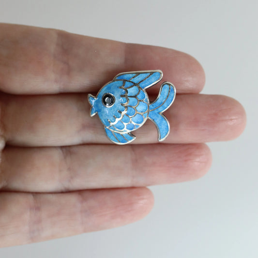 Vintage Margot de Taxco Jewelry | Petite Light Blue Enamel Fish Brooch