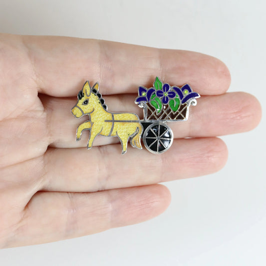 Vintage Taxco Silver Mexican Jewelry | Jeronimo Fuentas Enamel Flower Cart Brooch