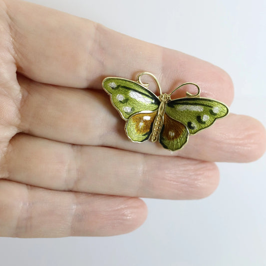 Vintage Hroar Prydz Enamel Jewelry | Petite Green Enamel Butterfly Brooch