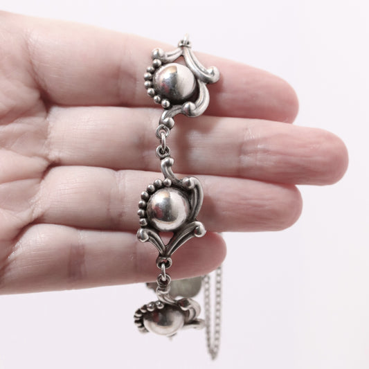 Vintage Los Castillo Taxco Mexican Jewelry | Sterling Silver Floral Cabochon Link Bracelet