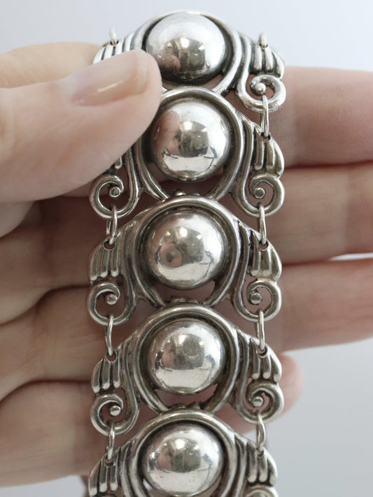 Vintage Los Castillo Taxco Mexican Jewelry | Wide Sterling Silver Cabochon Link Bracelet