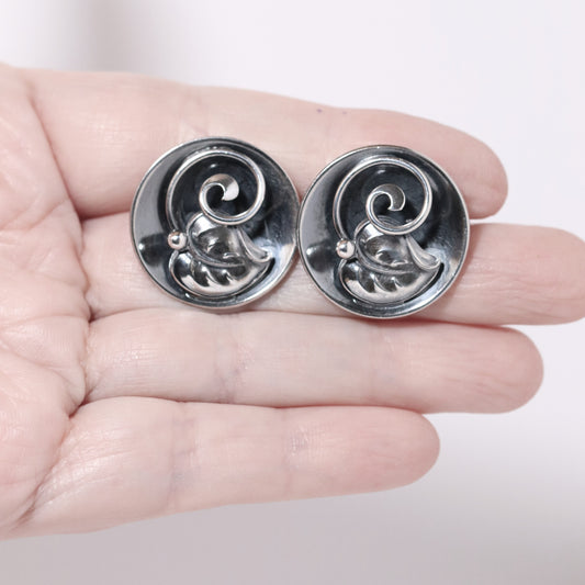 Vintage Scandinavian Jewelry | Hans Jensen Sterling Silver Leaf Screwback Earrings